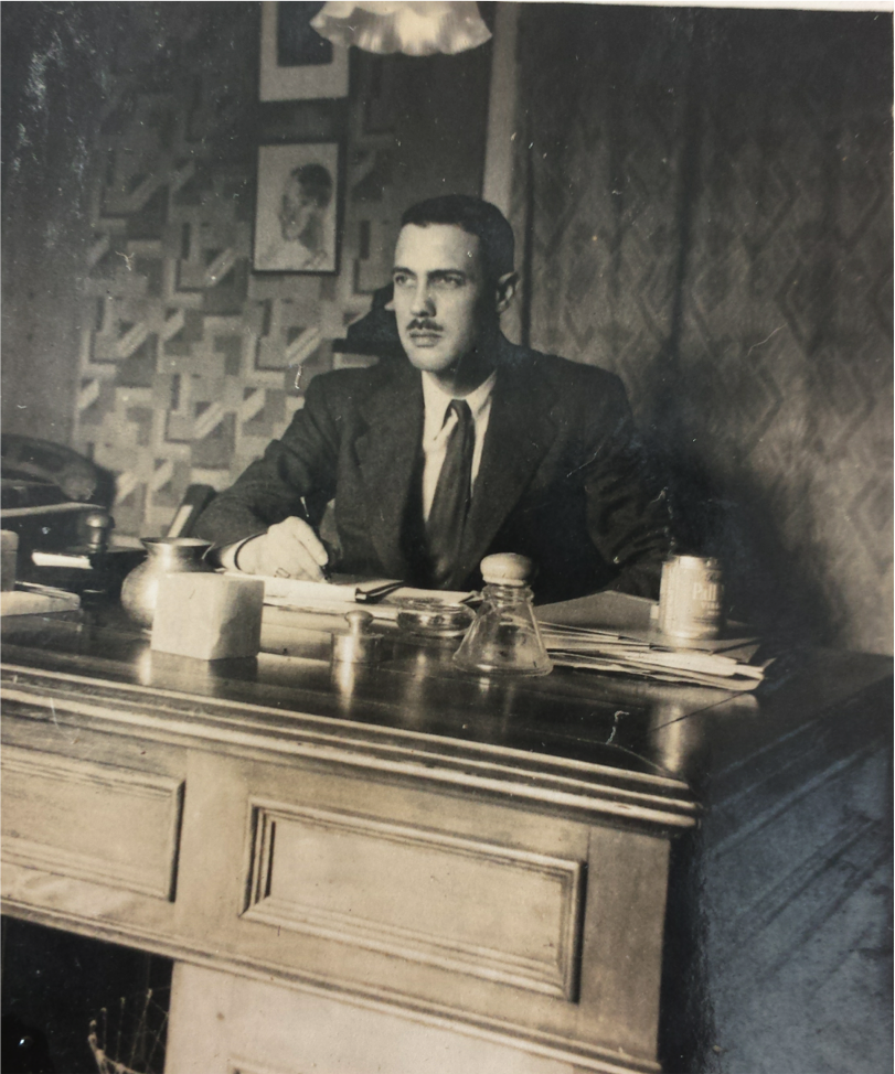 L’historien Auguste Toussaint à son bureau à Forest-Side, Ile Maurice, vers 1960 :